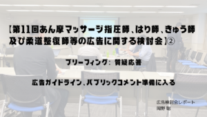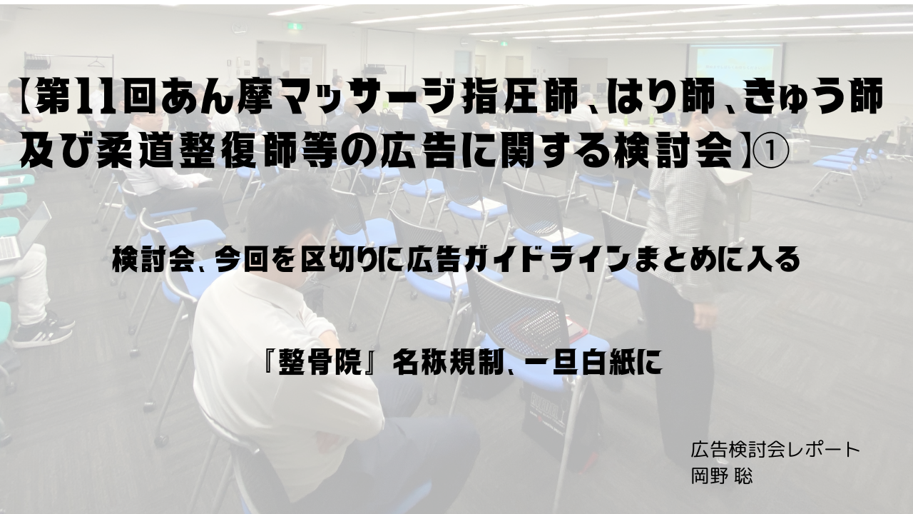 「第11回あん摩マッサージ指圧師、はり師、きゅう師及び柔道整復師等の広告に関する検討会」の報告①/岡野 聡